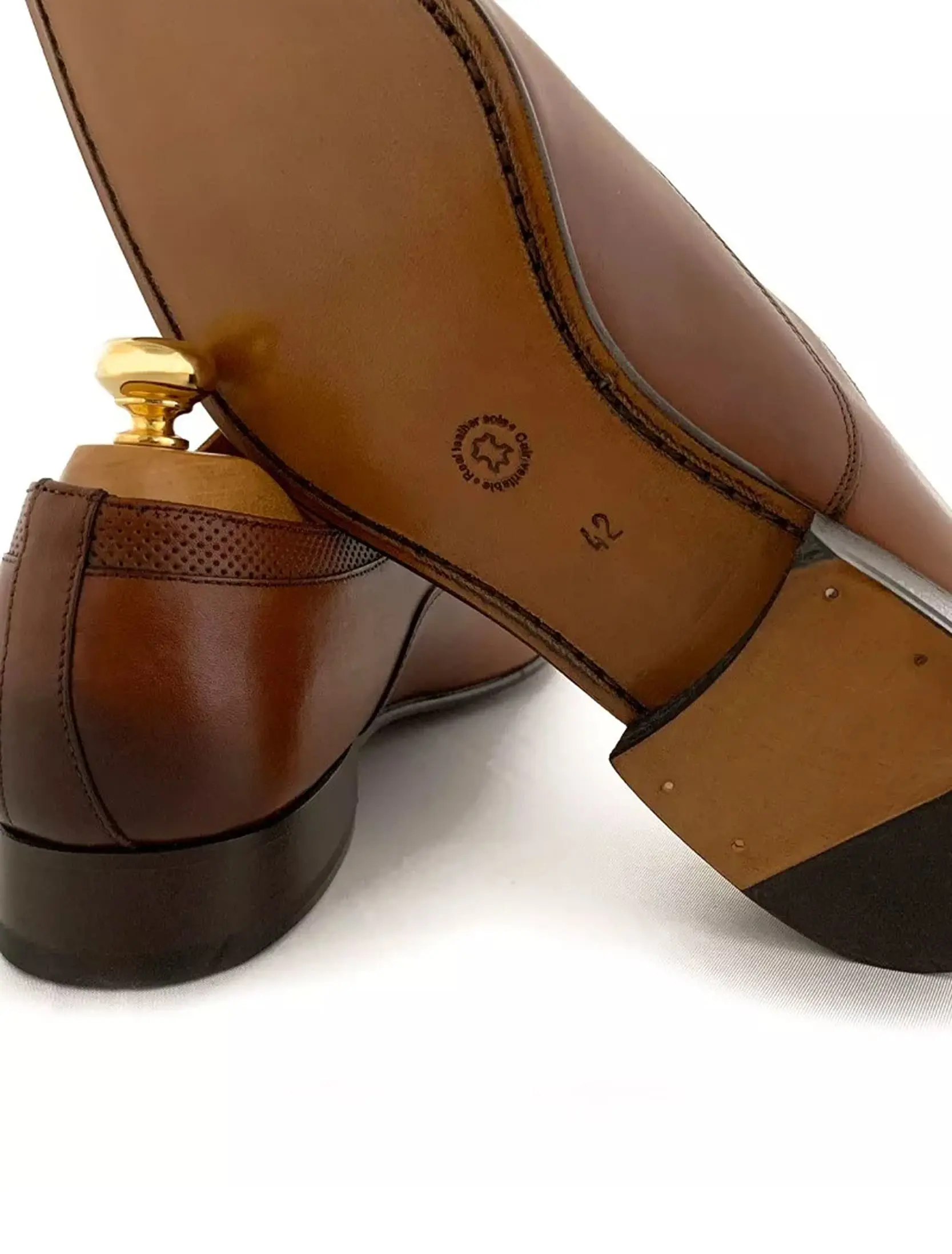 Chaussures de cérémonie en cuir marron au style élégant et intemporel. Le modèle 1311 Marron allie confort et légèreté, s’ajustant parfaitement au pied. Idéales pour accompagner une tenue de mariage ou de cérémonie, ces chaussures cognac s’accordent facilement à tous les styles grâce à leur teinte classique et leur design soigné.