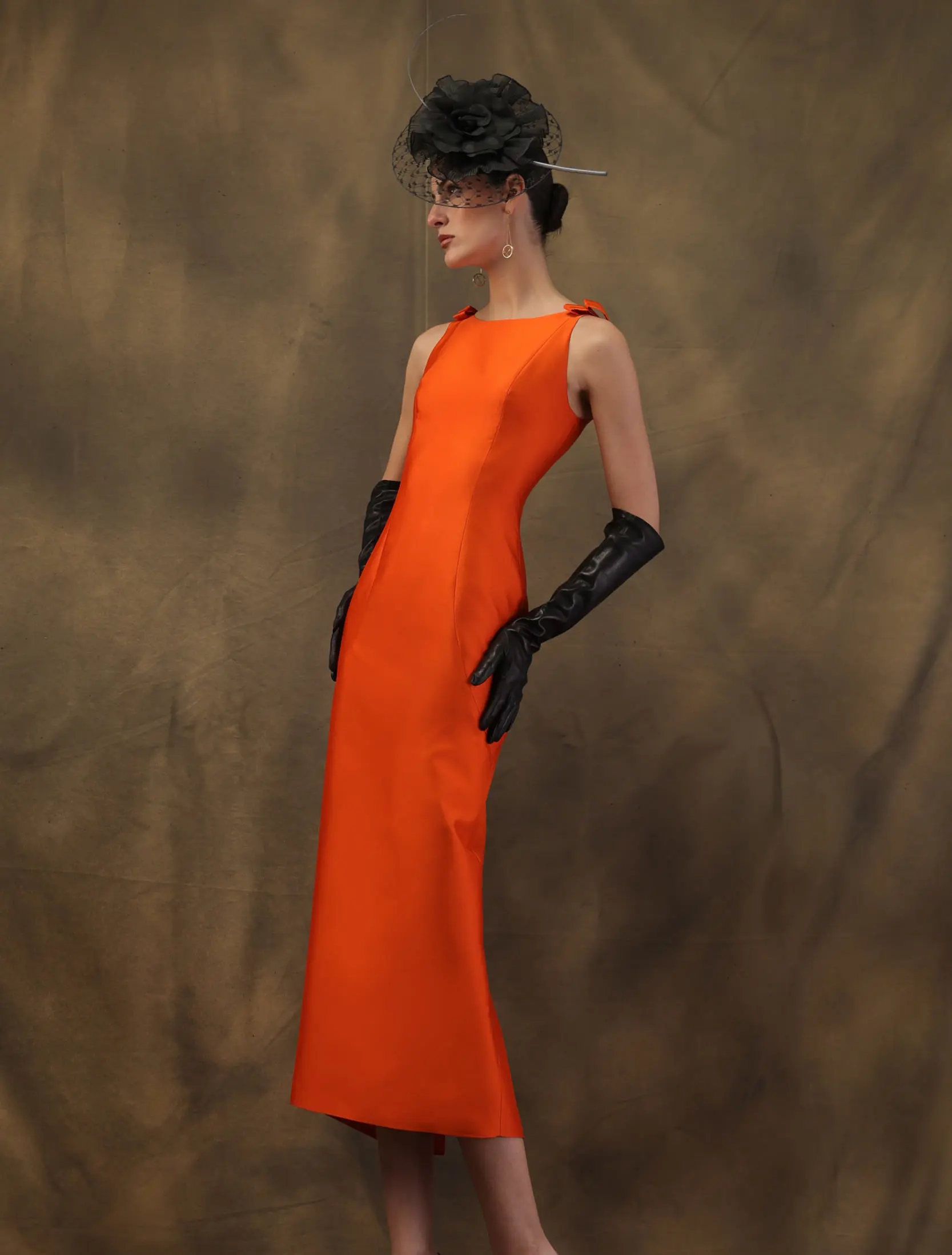 Robe en tissu mikado avec capeline assortie ou manteau en organza.