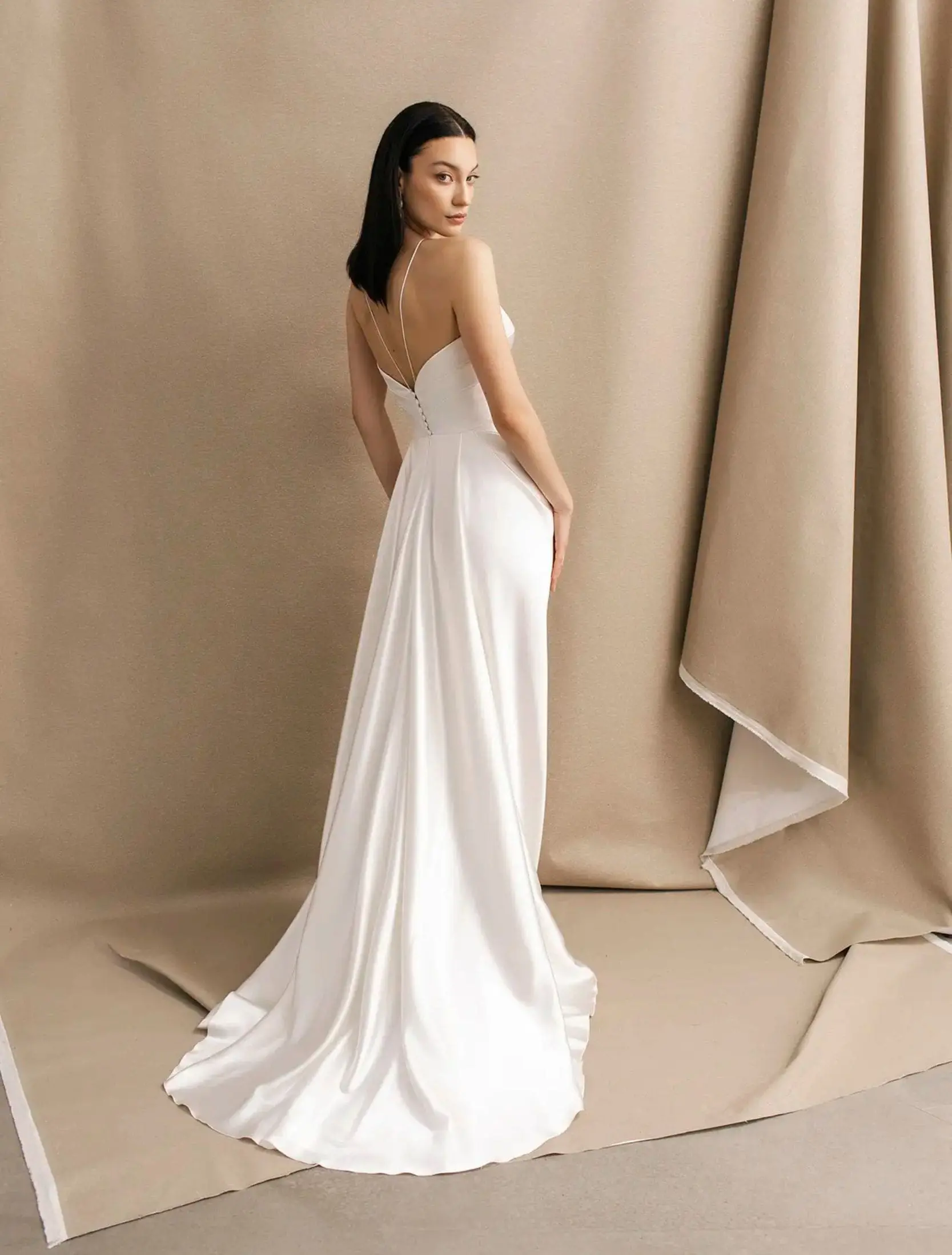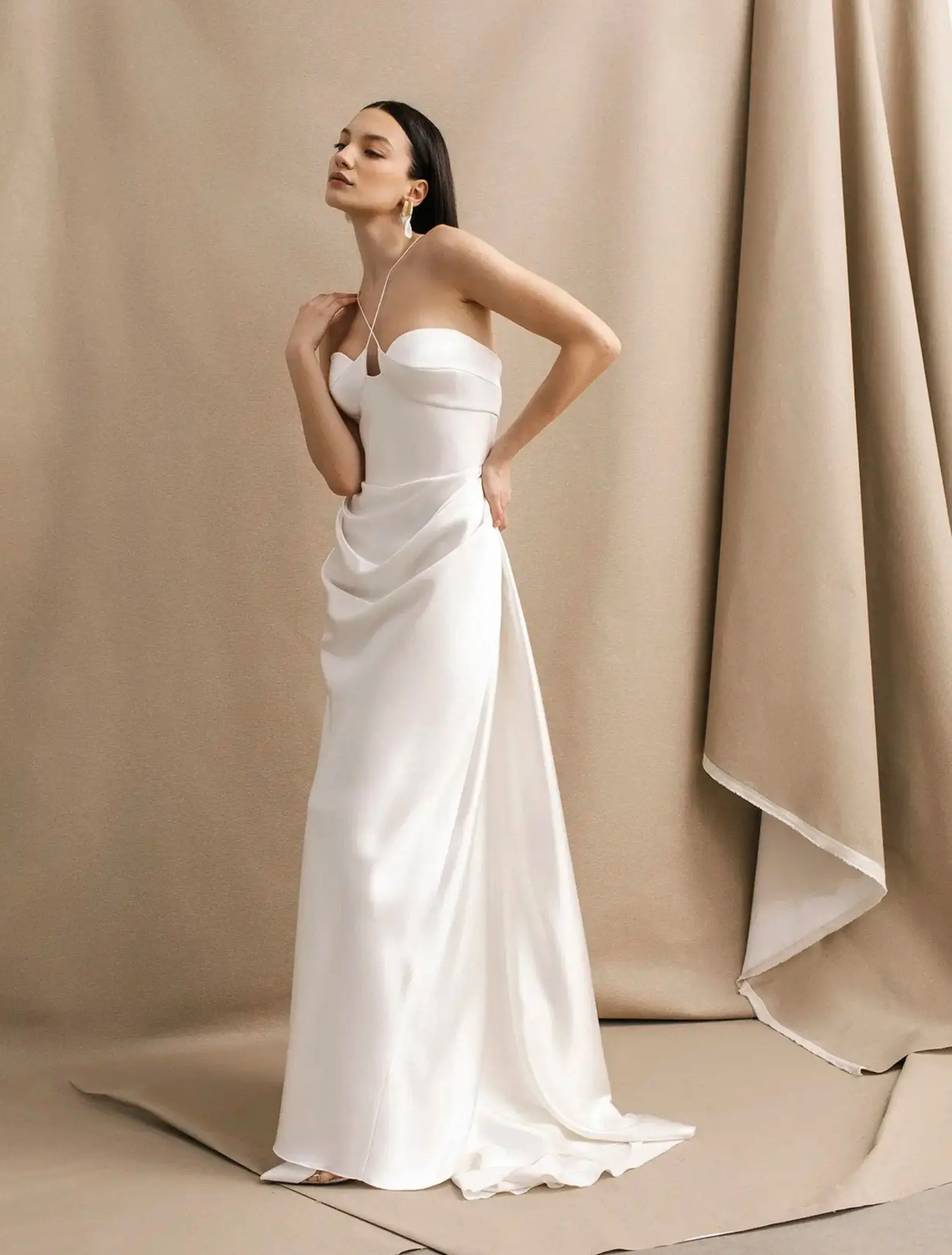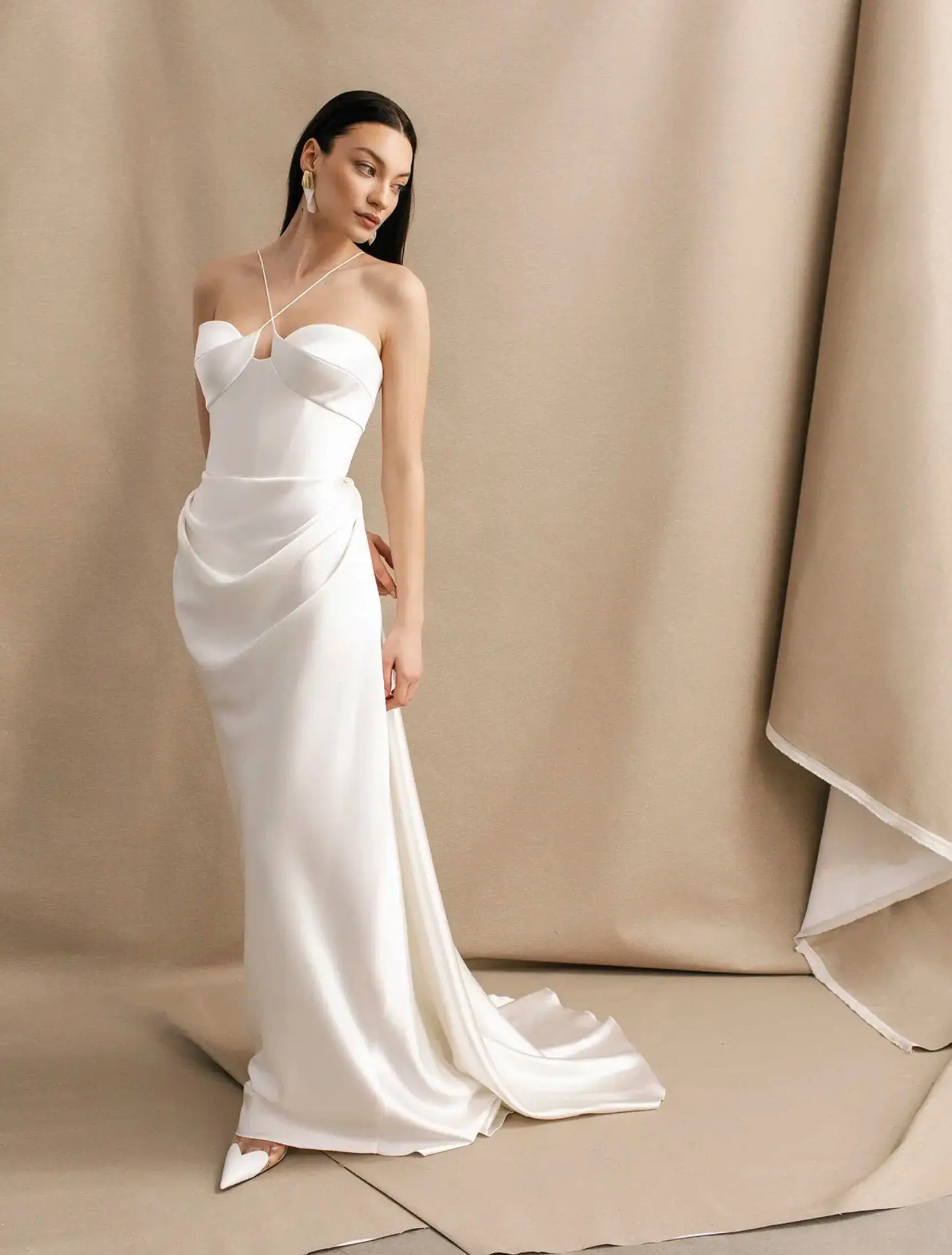 Robe de mariée épurée et contemporaine, Leya incarne une élégance naturelle et moderne.