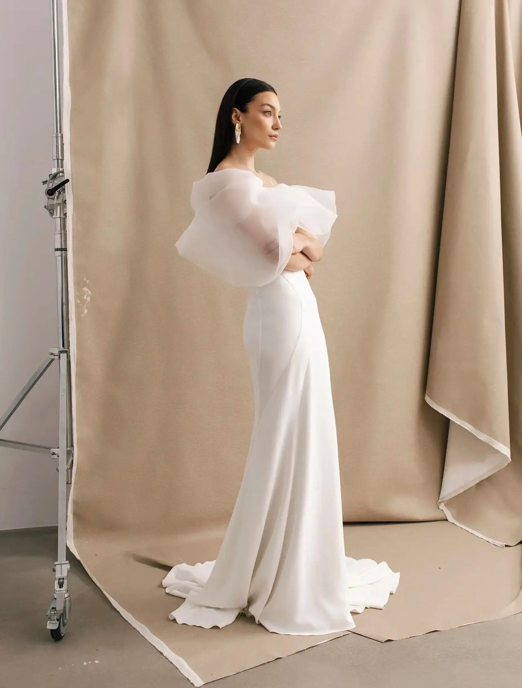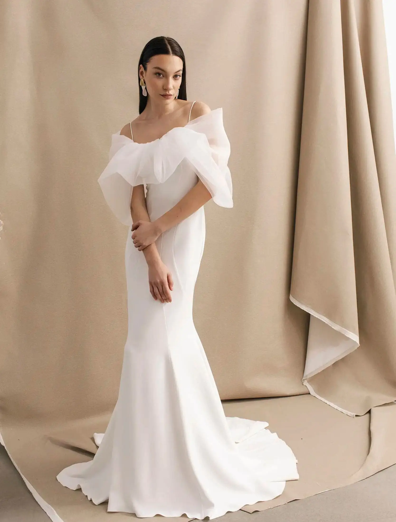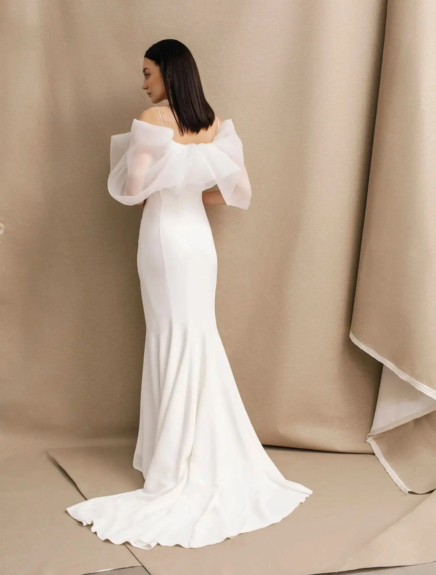 Robe de mariée contemporaine aux volumes aériens, Tina incarne une élégance douce et moderne.